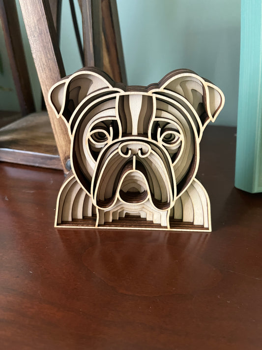 Bulldog 3D Wooden Mandala Head, 4" Inch Dog Mandala