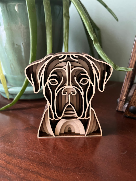 Boxer 3D Wooden Mandala Head, 4" Inch Dog Mandala