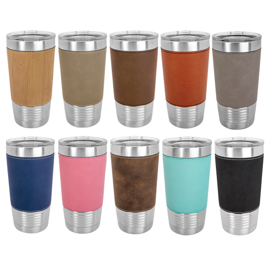 20 ounce Insulated Leatherette Tumbler with sliding lid